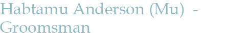 |  | I met Mu once I started attending Faith Presbyterian Church. He thought my name was Chester for the first few months. It wasn't until he started attending bible studies at my house, that he learned my name is not Chester. Mu's goal is to be the most fit groomsmen. Good luck Mu! |